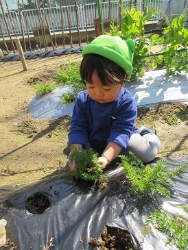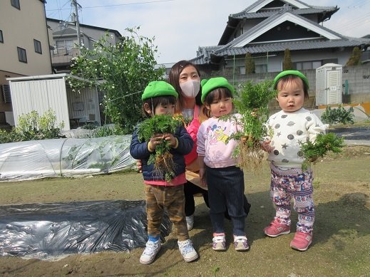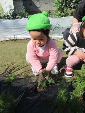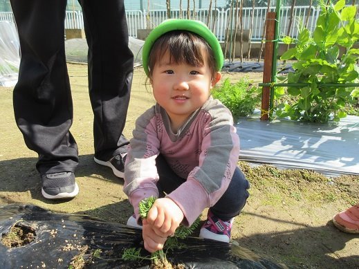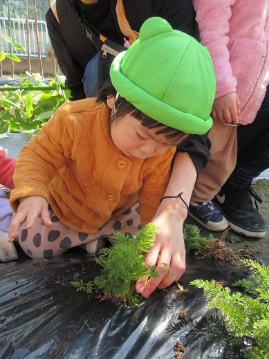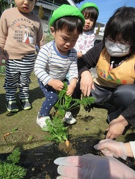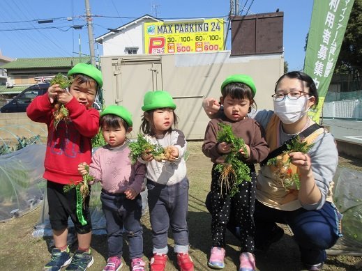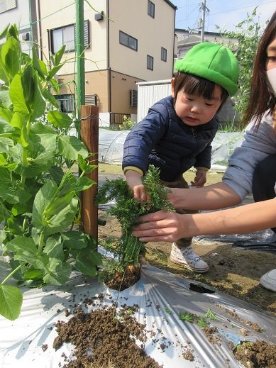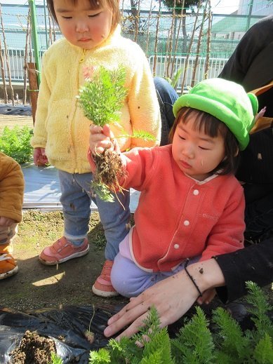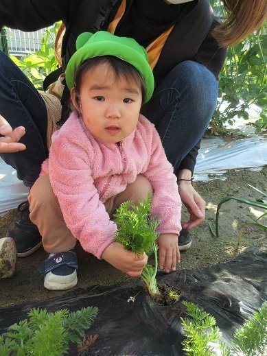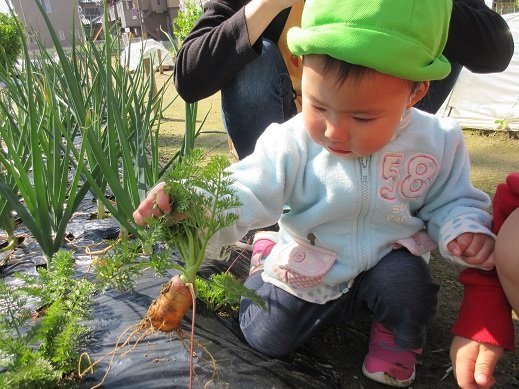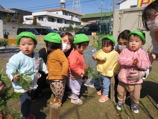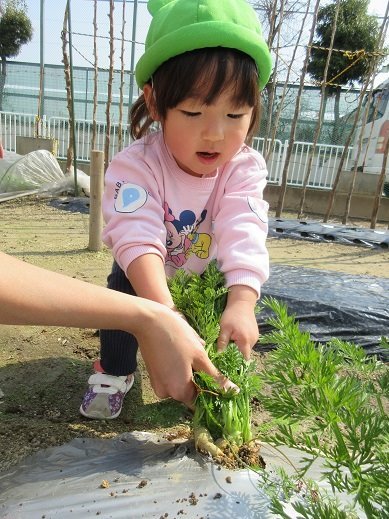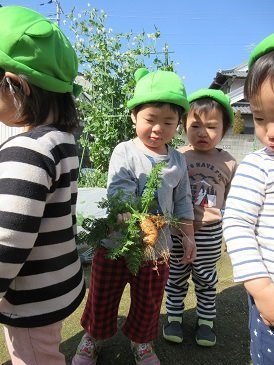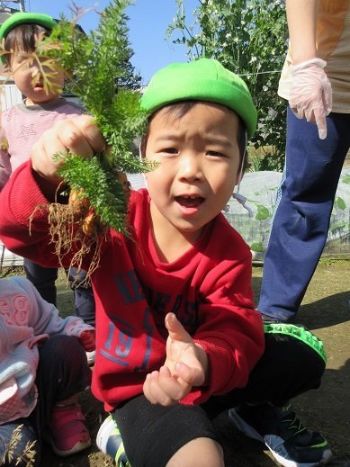 お迎えのパパやママに「にんじん!」と嬉しそうに見せていた子ども達。