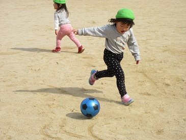 大きな広場でサッカーをしておもいっきり走り回り、水分補給をしながら遊びましたよ♪