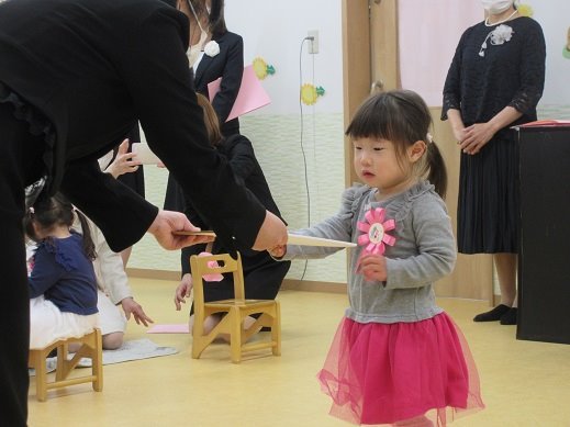 卒園式が始まると、ピシッと椅子に座って話を聞いていたね。