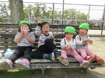 「座っておやつにしよう!」の声に一目散で座りに行きましたよ。(笑)