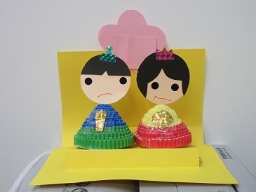 子ども達が思い思いに作ったひな人形たちが煌びやかにお出迎え♡