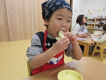 お楽しみのおやつもパクパク(*’▽’) さぁ、エネルギー補給してまた元気に遊びました♪