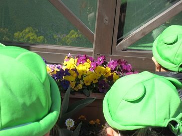 次の日、そろーっとビオラの花の上に置きました。子ども達が覗き込んで「バイバーイ」とご挨拶。