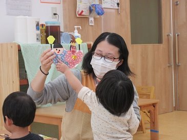 「公園に行っている間に羽が伸びるからね。」と話すと、「行ってきまーす!」と蝶々に手を振り元気に出発!