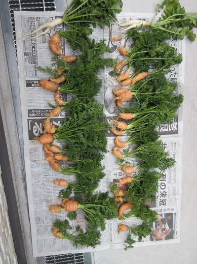 長い葉の割に小さかったけど(笑)人参の収穫、楽しかったね(*^-^*)