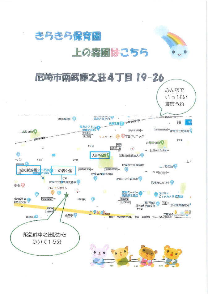 アクセス ホームブログ 2020.03.31 阪急「武庫之荘駅」より徒歩15分。 ※原則、徒歩か自転車でお越しください。駐車場は送迎時のみ一時利用していただけます。スペースに余裕はありませんのですみやかに移動してください。