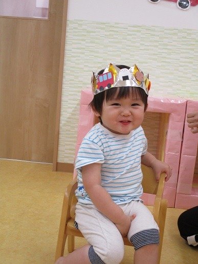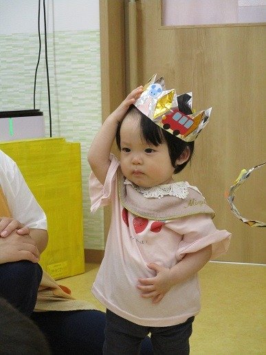 お誕生日の冠を被って