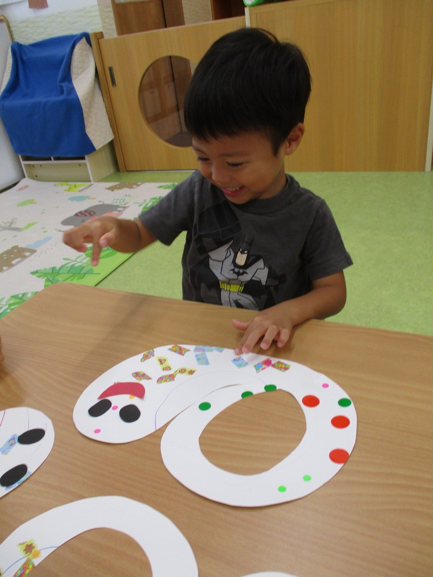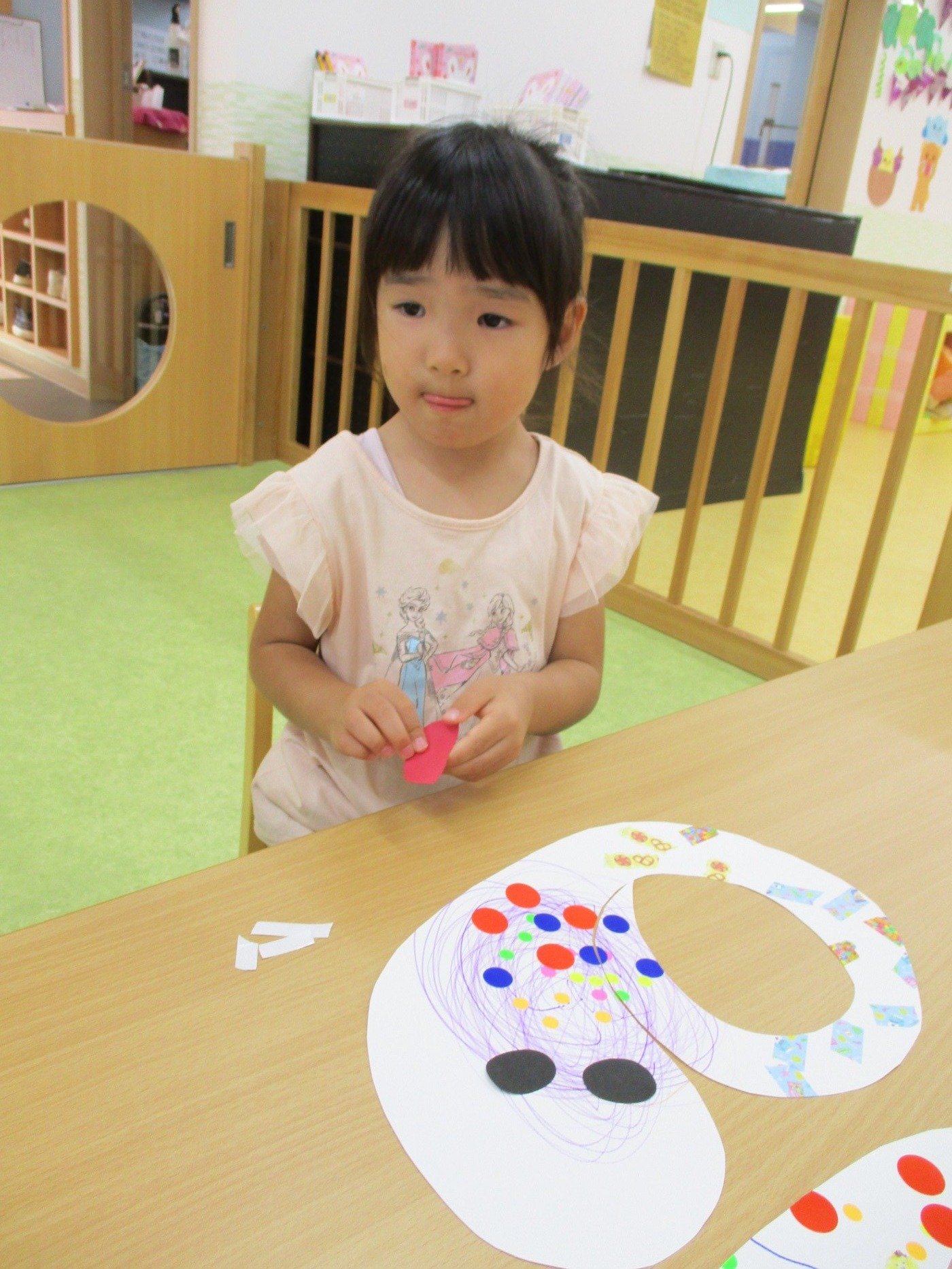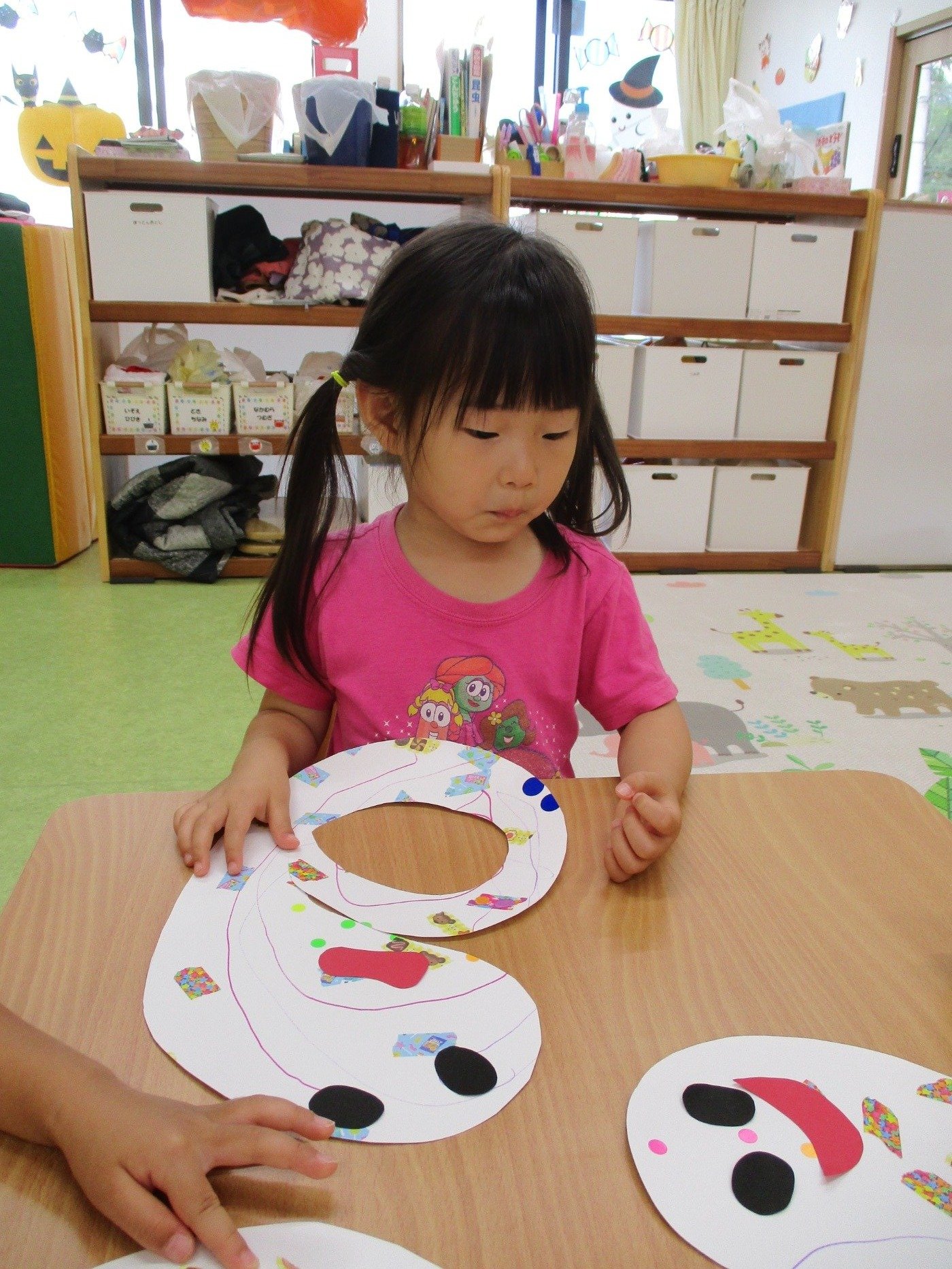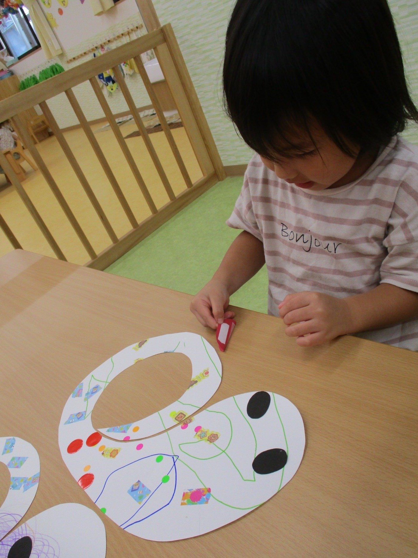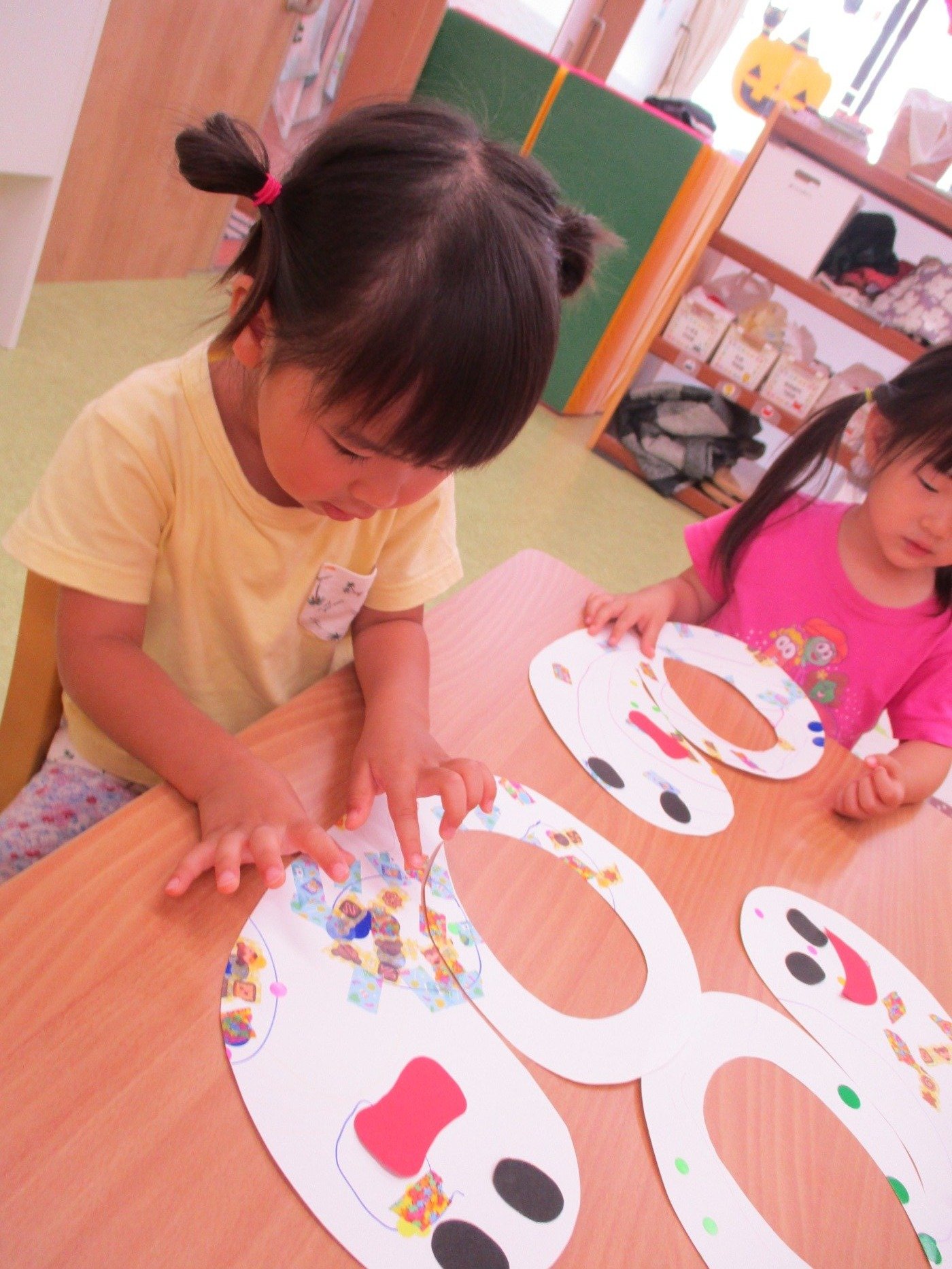 目と口をペタペタ…