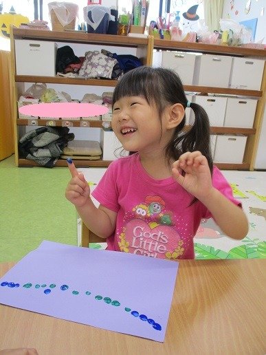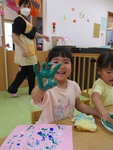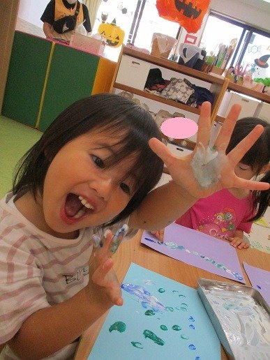 「できたー!こわいでー」と