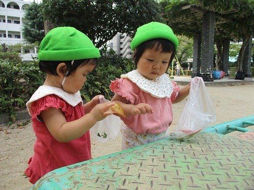 葉っぱなどを入れては