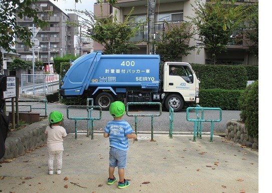 「収集車!」と大喜び!