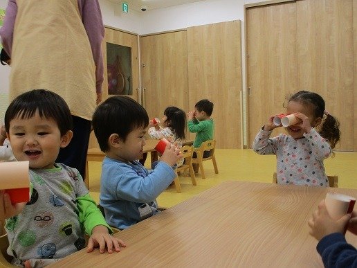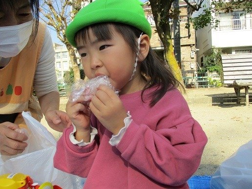 朝のおやつを食べて、