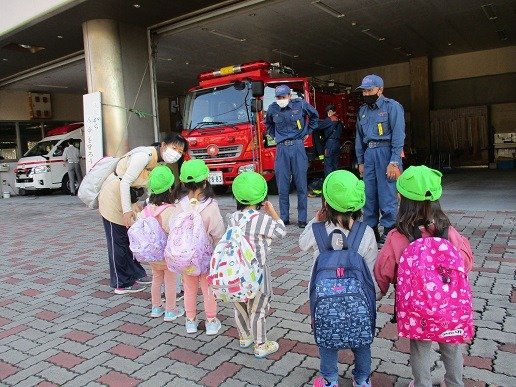 「わぁ!消防車や!」