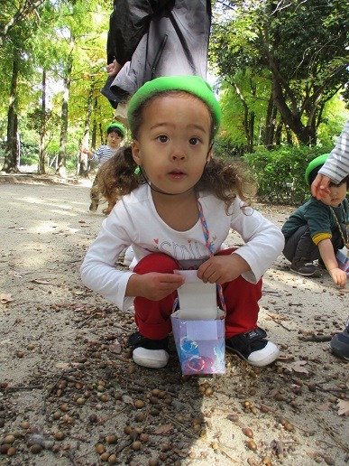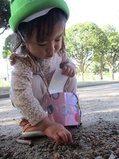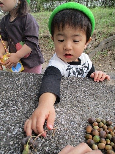 どんぐり集めに夢中!