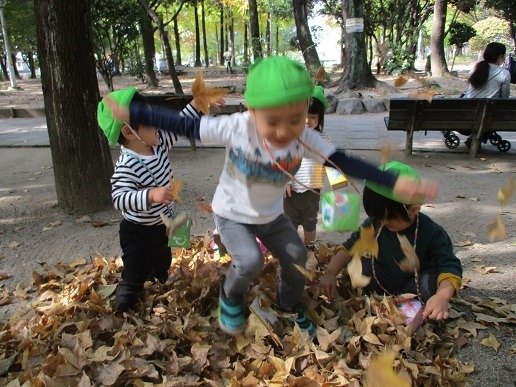落ち葉へジャンプ!
