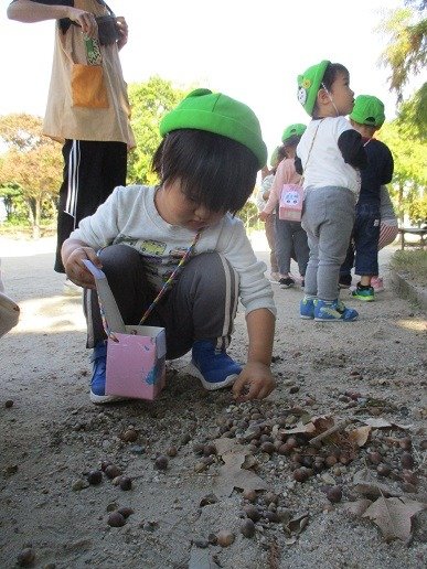 どんぐりや木の実探しに