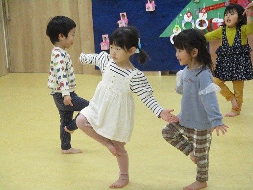 リズムで体を動かしたり…