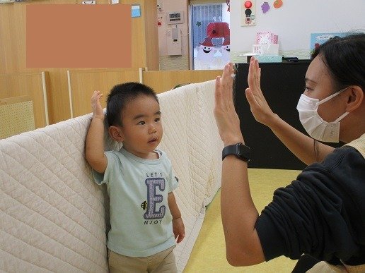 手にタッチをして