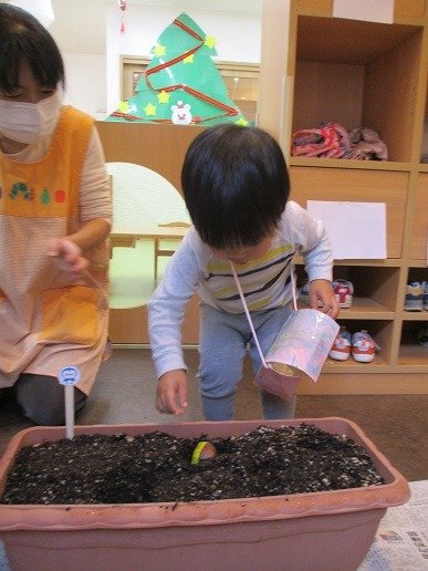 指定の球根を優しく渡して
