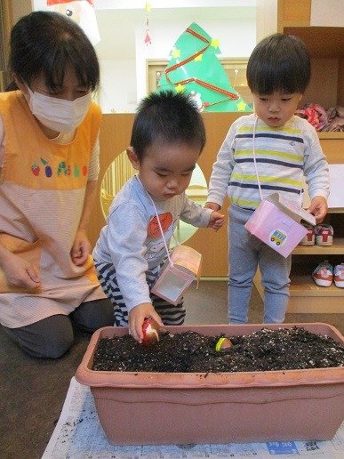 球根植え付け場に🌷
