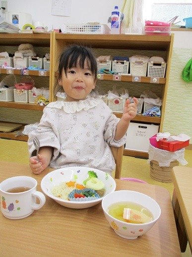 ままごとをしながらも
