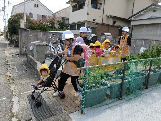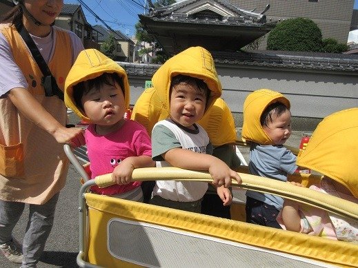 散歩車に乗車したり、
