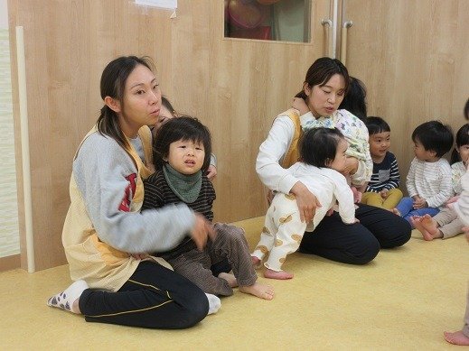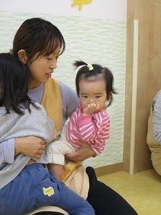 先生に抱っこされたまま
