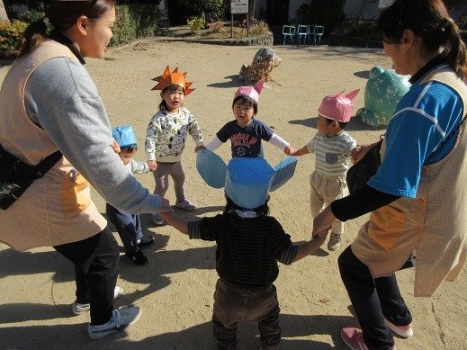 手を繋いで歌を歌ったり