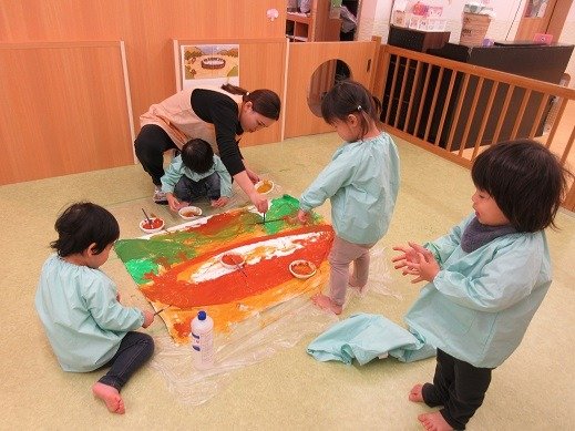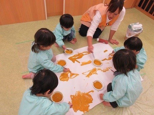 子ども達が、塗たくり