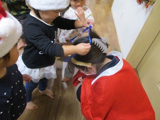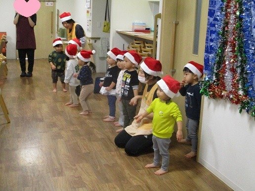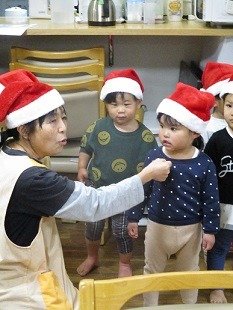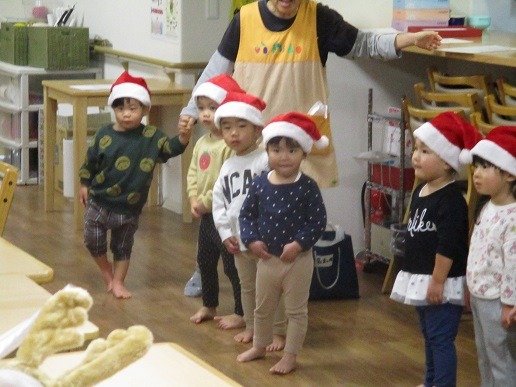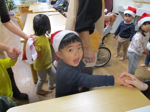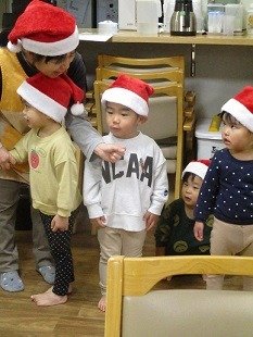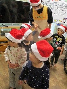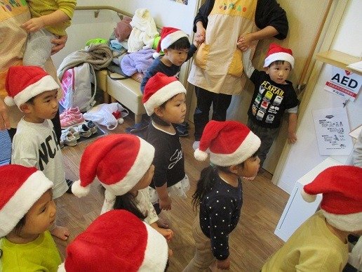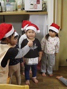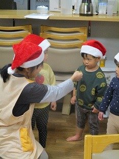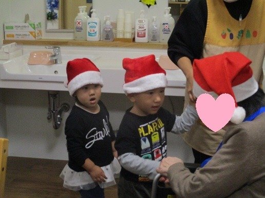 サンタ帽をかぶり、
