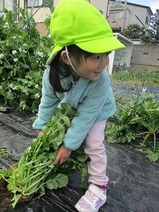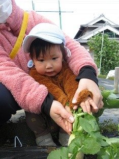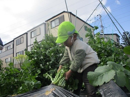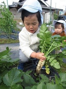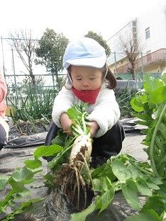 ☆3月のきらきらっこ☆⑭大根収穫Ⅱ♬ ホームブログ 2024.03.18 3月18日(月)☀ 先週、お休みしていた お友達が、今日大根収穫を しました♪青々と大きくなった 葉っぱを握り、うんとこしょ! 真っすぐな大根、 曲がった大根…どの大根も 自然の恵みをたくさん頂いて 育ったね♬おうちで、 どうやって食べたかな? おいしかったかな? また、教えてね(^^)/