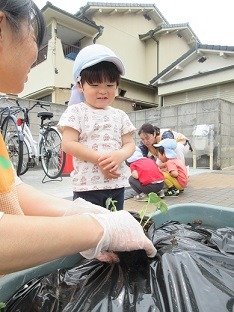 畑にも夏野菜を植えようね🎶
