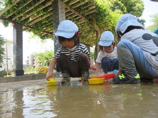 最初は、水や泥が苦手