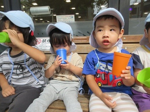 ベンチでお茶タイム(^^)