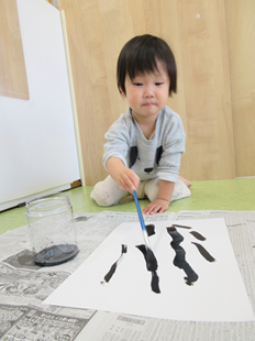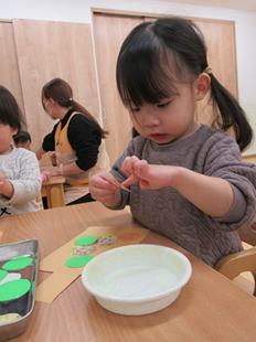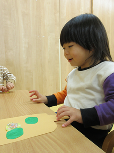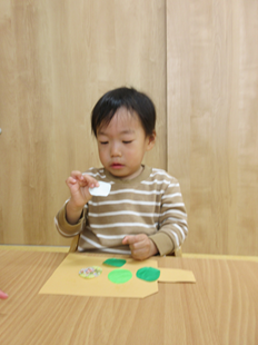糊を指につけて塗り塗り…