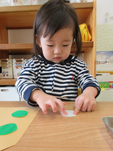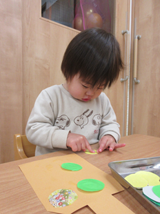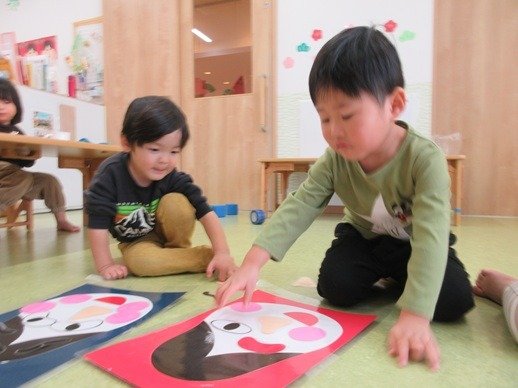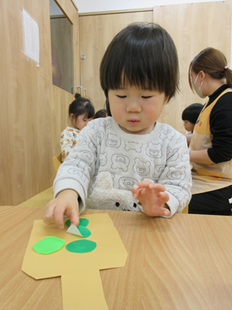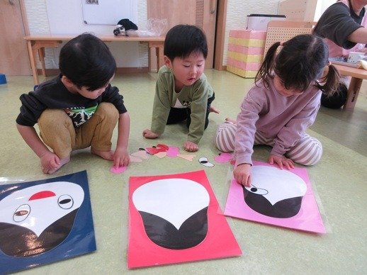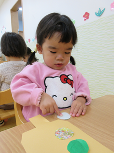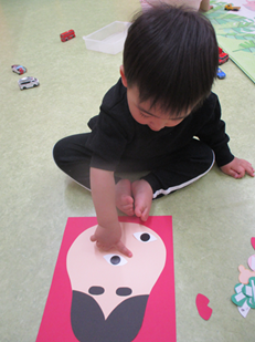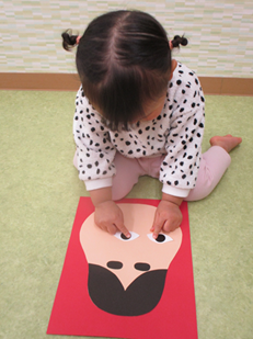 目や鼻をペタペタ貼って