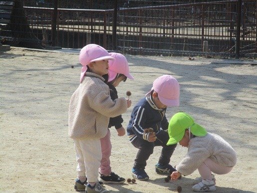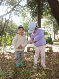 ☆2025年2月のきらきらっこ☆②戸外遊び🎶 ホームブログ 2025.02.18 北風に負けず元気いっぱい♬ 今月は、寒暖差が激しく、 寒さを感じる事が多いですね。 きらきらっこ達は、 北風に負けず、元気いっぱい! 公園で木の実を見つけたり、 散策遊びを楽しんでいますよ♬ 18日(火) くま組さんのお昼寝前… お友達と一緒が楽しい 笑顔でいっぱい✨ ほっこりした時間です💕