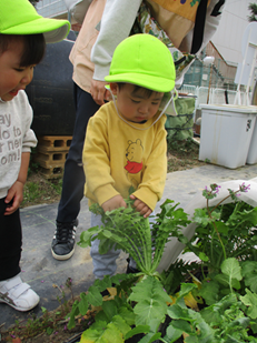 一緒に葉をぎゅっ!と