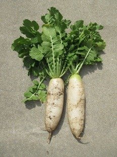 収穫した大根を