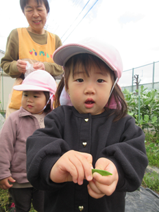 ☆2025年4月のきらきらっこ☆④くま組絹さや収穫♪