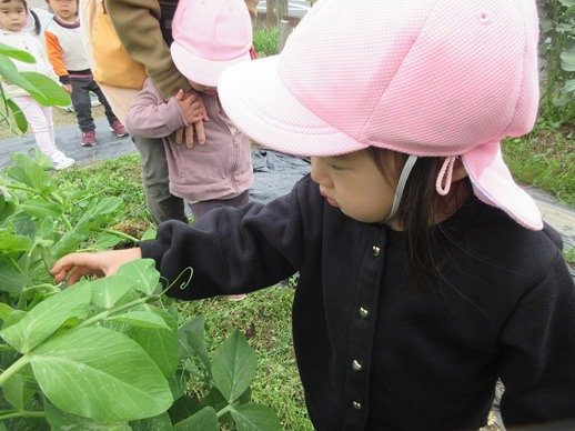 くま組🐻絹さや収穫♪