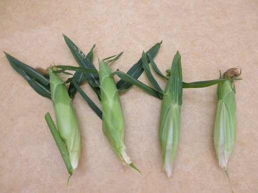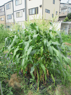 茎には、とうもろこしが