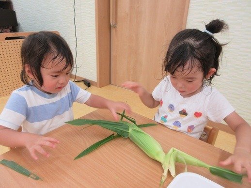とうもろこしを掴んで