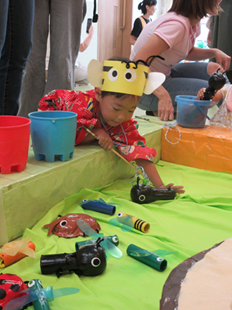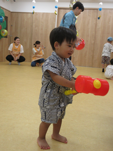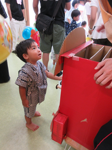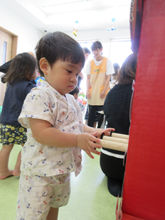 エイッ!と投げ入れる子、