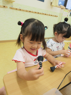 くま組さんは、朝顔を使って