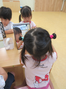 見ると、早速鏡を見ながら