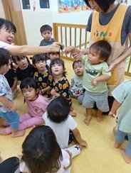 ☆2025年8月のきらきらっこ☆④あげはちょう🦋 ホームブログ 2025.08.29 あげはちょう🦋 あおむしが、さなぎになって 1週間…昨日は、お腹の 模様が見え始めていたので そろそろかな?と 話していたら… 今朝、羽化しました! 大きな羽を広げた あげはにご挨拶♪ 大空へ飛び立つ前に 子ども達みんなとタッチ! バタバタ動く手足に ちょっぴりびっくり顔の 子どもも…(笑) タッチで仲良くなった アゲハは、元気よく大空へ 飛び立ちました♪