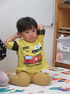訊かれ、両手で耳を作り