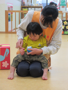 そして、先生の膝の上に