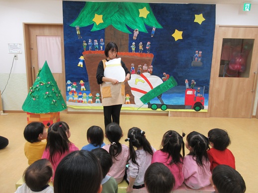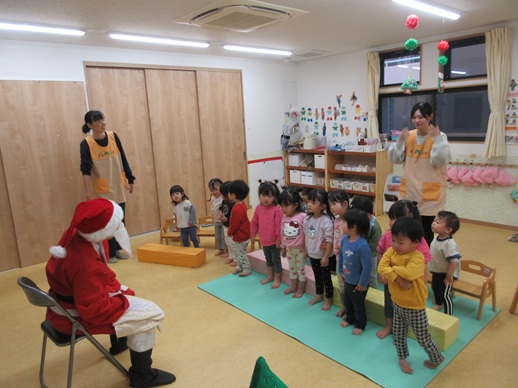 歌いました。可愛い歌声にサンタさんはるんるん♪